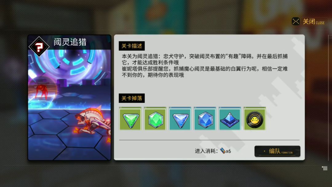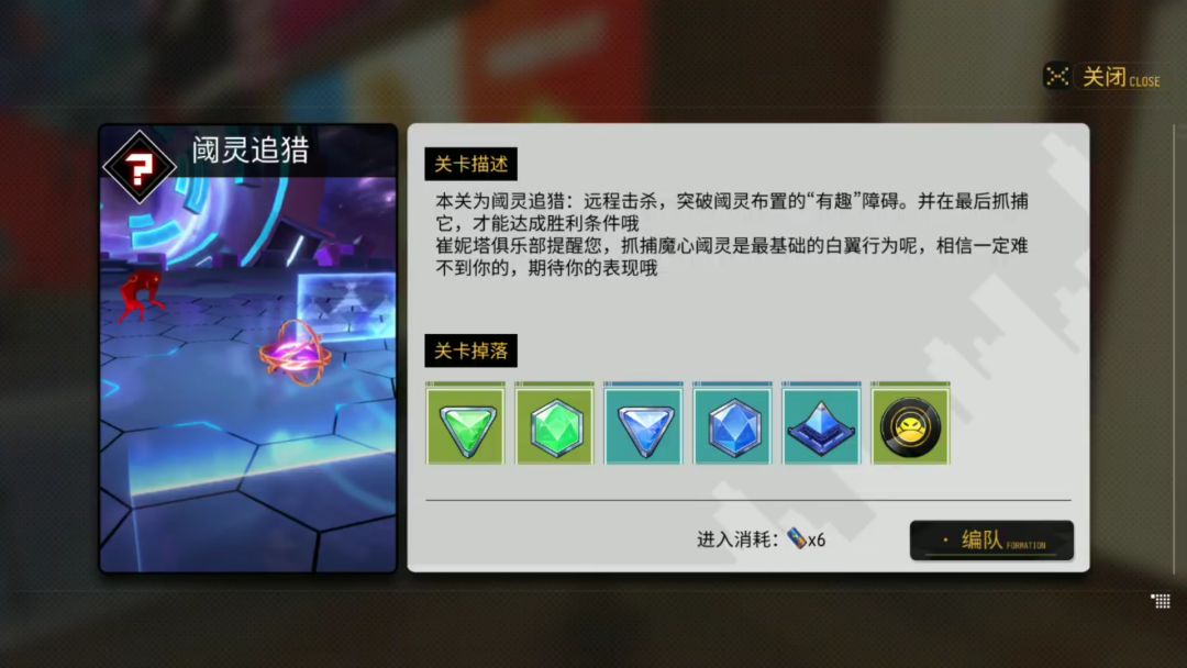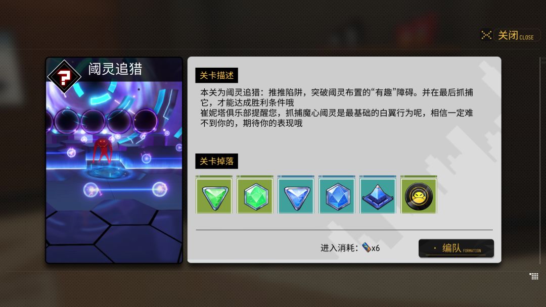 这个相当于游戏中的小游戏,通过这个小游戏可以奖励,当然有难度大的也有难度小的,获得的奖励也是不一样的,获得的奖励可以装备或者进行强化源石,每个地图都有很多不同的阈灵追猎,每一次通关就会消失.