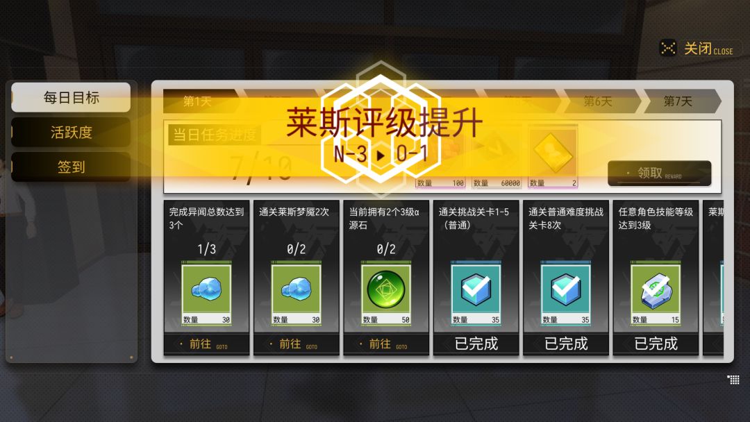 很多人没有理解这个二级,是强化不是再获取导致找了半天怎么刷这个二级的奇核浪费了很多时间,一个评级全达成了就会给一定量的抽奖券,莱斯评级也决定了后面主线任务的进入资格,所以一定要做莱斯评级中的任务,升级莱斯评级,要肝的呀!