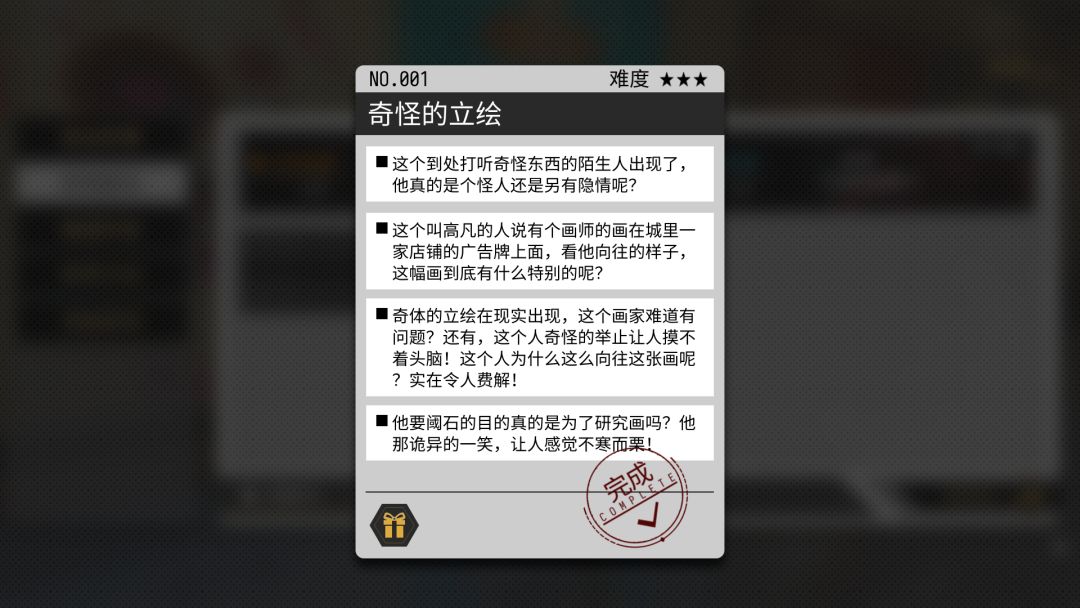 1.奇怪的立绘,之后去门口找到那个陌生人再次接任务,触发下一个异闻
