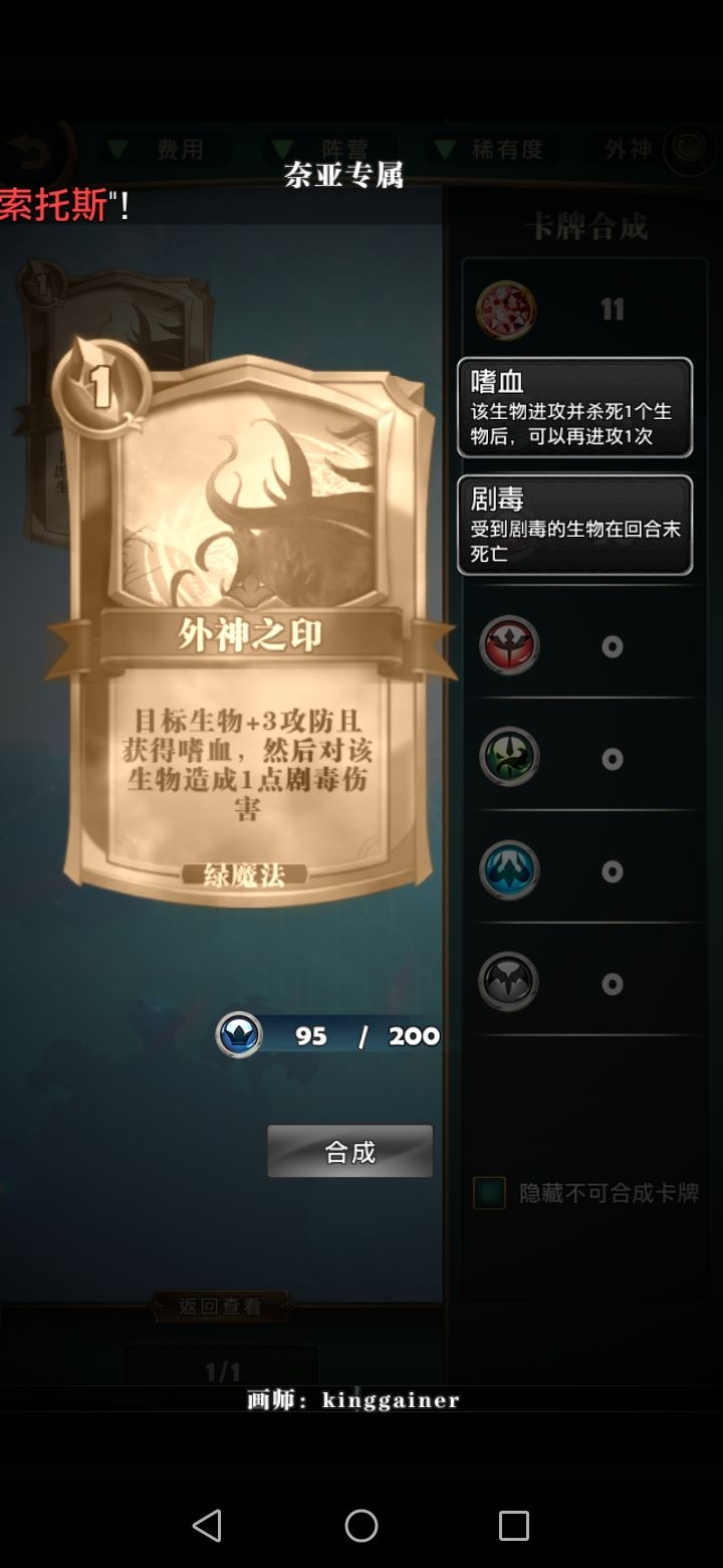 ①外甥之印 额外加了个手里有 外神牌 目标生物 不朽。 总体来说利大于弊,触发时 契合 加攻嗜血冲冲冲,也可以当做一次性不朽肉盾。但是偶尔当做剧毒单解的时候就得注意 不朽。