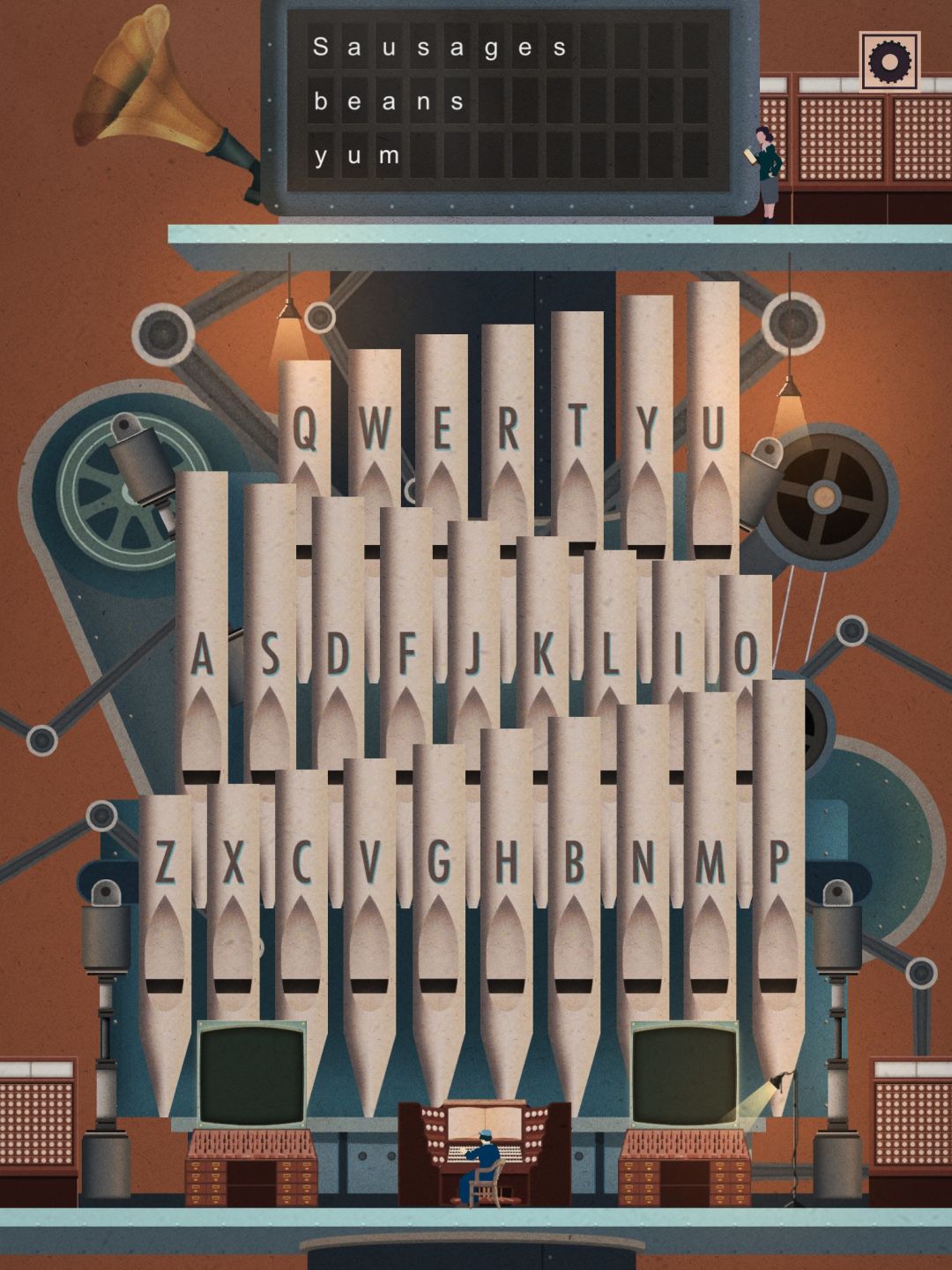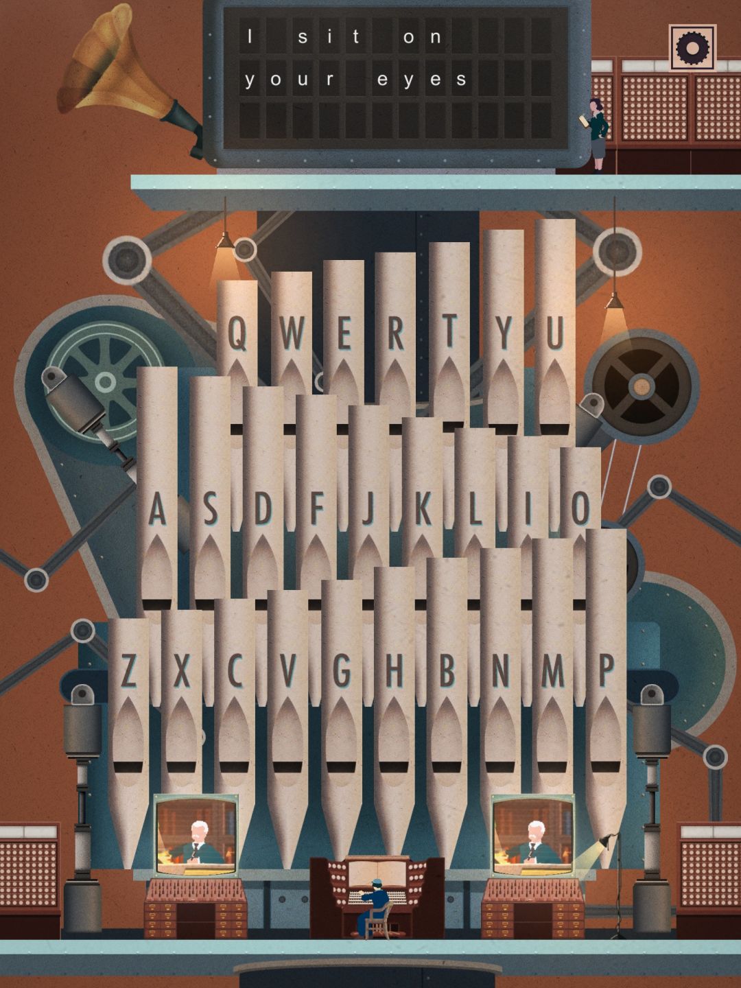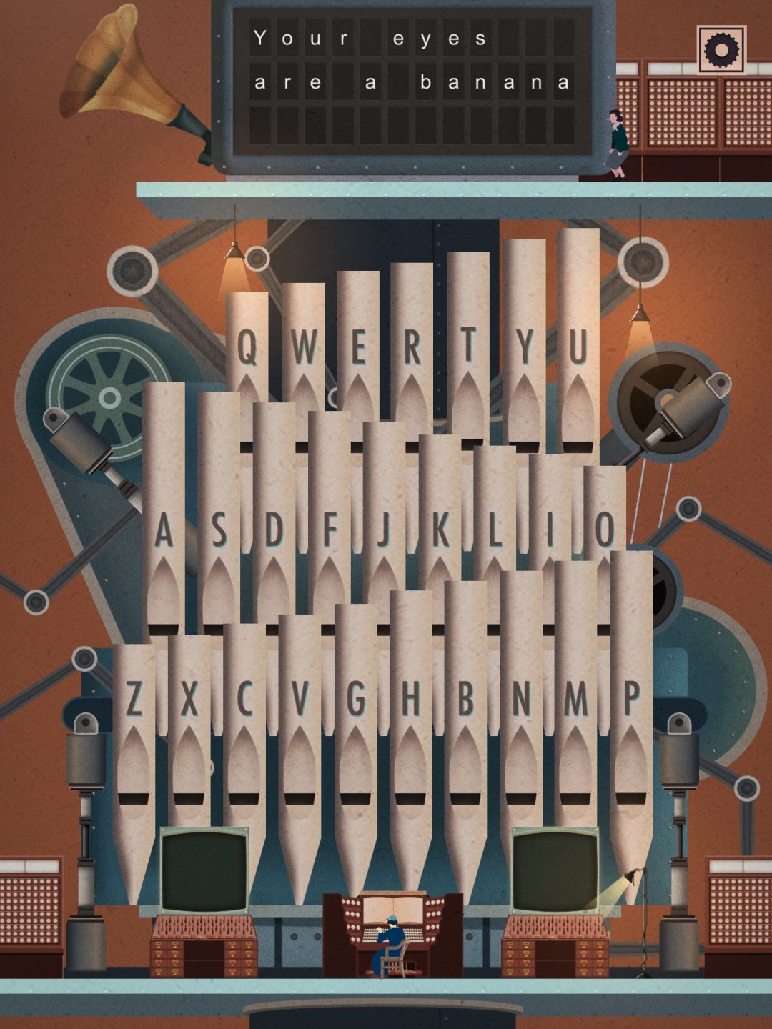 这一关类似填字游戏,按动管风琴输入字母。一共要说三句话。