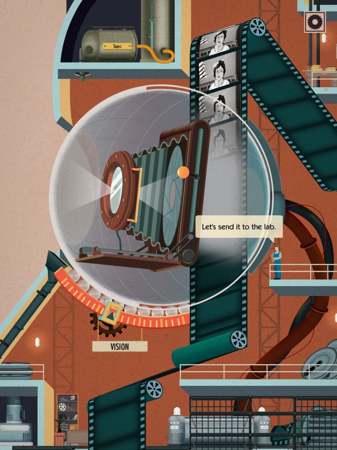 3⃣️冲洗好的胶片传导了神经中枢的观看美女办公室(大雾)你需要承担起诸位观看美女委员会委员们的电影放映工作:把灯关掉,打开放映机,然后以合适的速度转动下面的胶卷(我看一堆人在这里卡关,所以特意说明一下不是转的越快越好,转动到图像稳定的速度就可以了)