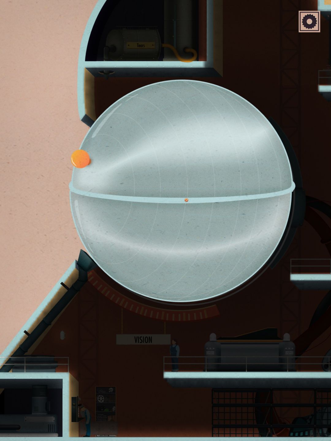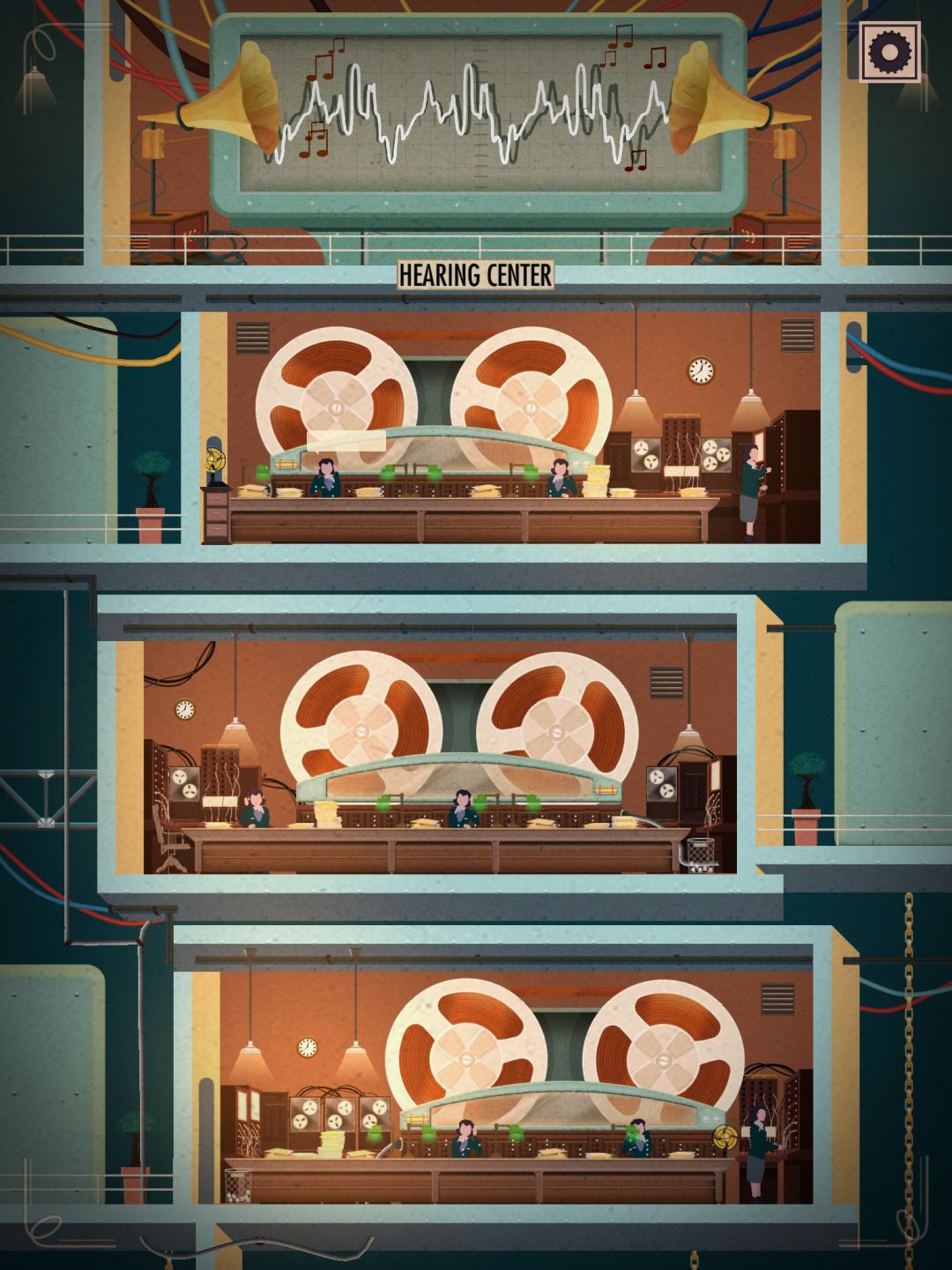 最后是超级好玩的调谐部分,为了让大脑(这个游戏里的大脑和现实中的大脑一样超级事儿逼)听到好听的音乐要调谐。这一关分成了三部分,由易到难,通过转动三个转轮分别调节波长、频率和振幅与预定部分调谐。(巨好玩,我能反复玩)