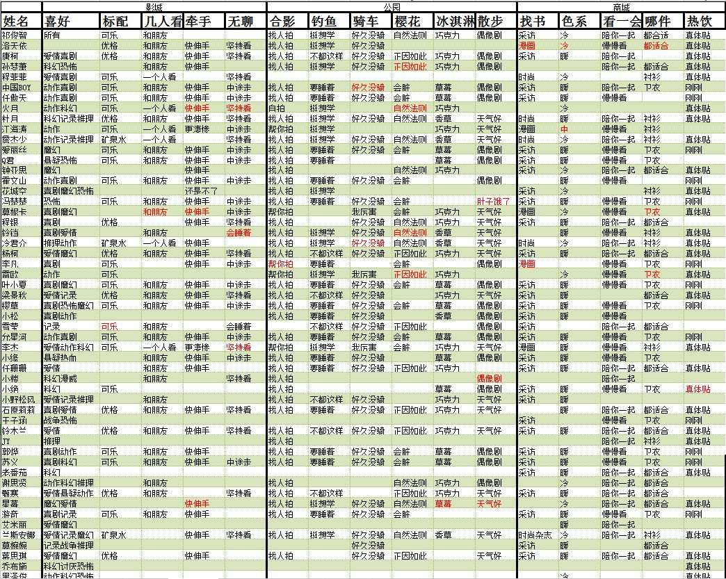 黑色为超绝 红色为普通或下降 后期有一些由于归纳了话术类 这种表格类的就没有太做