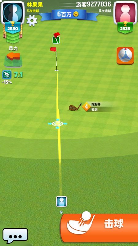 按照目前的风向,将球的旋转尽可能的与风向一致,这样球在后续弹跳中不会因为风而偏离方向。只要计算好第一个落点,打出完美,就可进洞。示例如图: