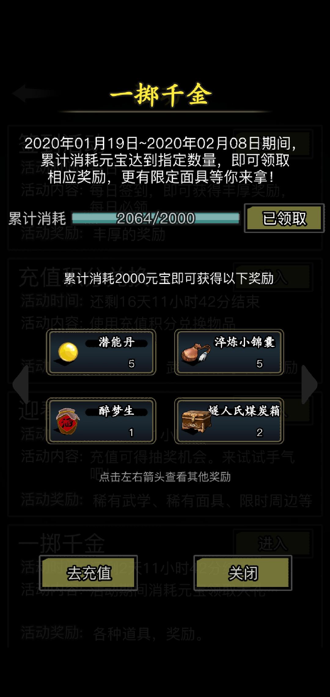 还有一掷千金的活动显示着已经达标,也显示着已领取,但背包里毛一根都没有