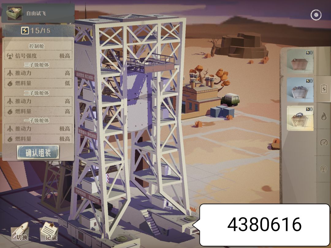 这是bug还是隐藏了移动方法,架子一直挡着。第一次进来的时候会移开,后面怎么弄都不会动,玩火箭太不方便了。提示少无所谓,有过火箭模拟游戏的经验。但这架子太碍了,后面都没心思弄了。随便飞个8731m/s。期待后续更新。