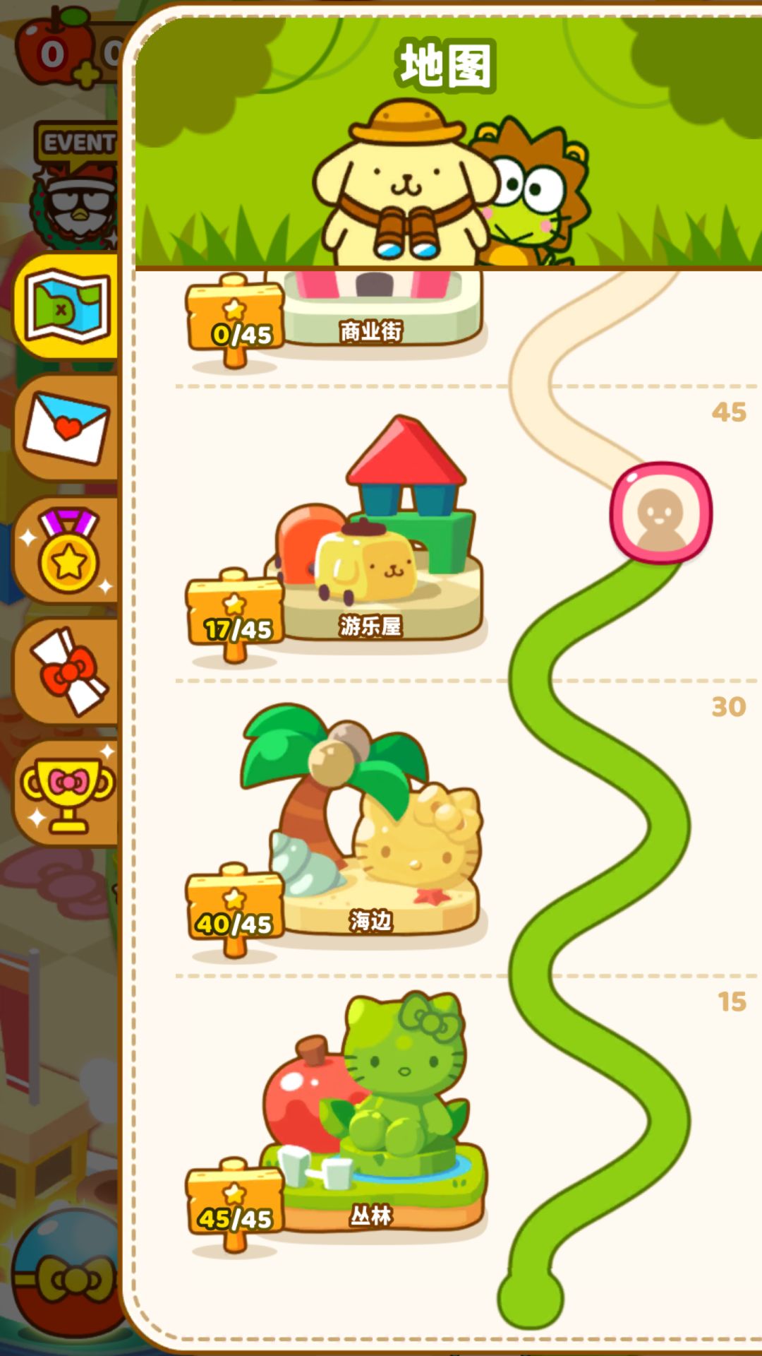 角色超级可爱哦,于是为了角色载金币,但是好像只能从成就中获取,除非是氪金大佬,第一次钻石抽中了s,很开心,五个苹果闯到了还不错的地方,一开始游戏是很简单的,后来当然是越来越难,好想拿活动的s,但是关卡有点难,弄了一关就放弃了,真的好可爱呕