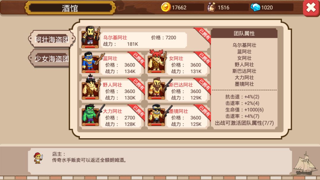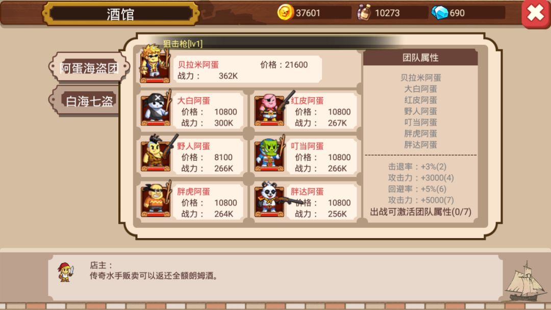 我的朗姆酒也不多,所以我选择拿最便宜的海盗做实验,也就是菠萝海“阿壮海盗团”最便宜的“大力阿壮”(价格2700朗姆酒)。然后选择的对比对象为死海的“阿蛋海盗团”最便宜的“野人阿蛋”(价格8100朗姆酒)。之所以选择阿蛋,没有选择“白海七盗”最便宜的“精灵大盗”。是因为大力阿壮是远程的,精灵大盗是近程攻击,没有可比性。还是“野人阿蛋”这个同为远程的更有可比性。