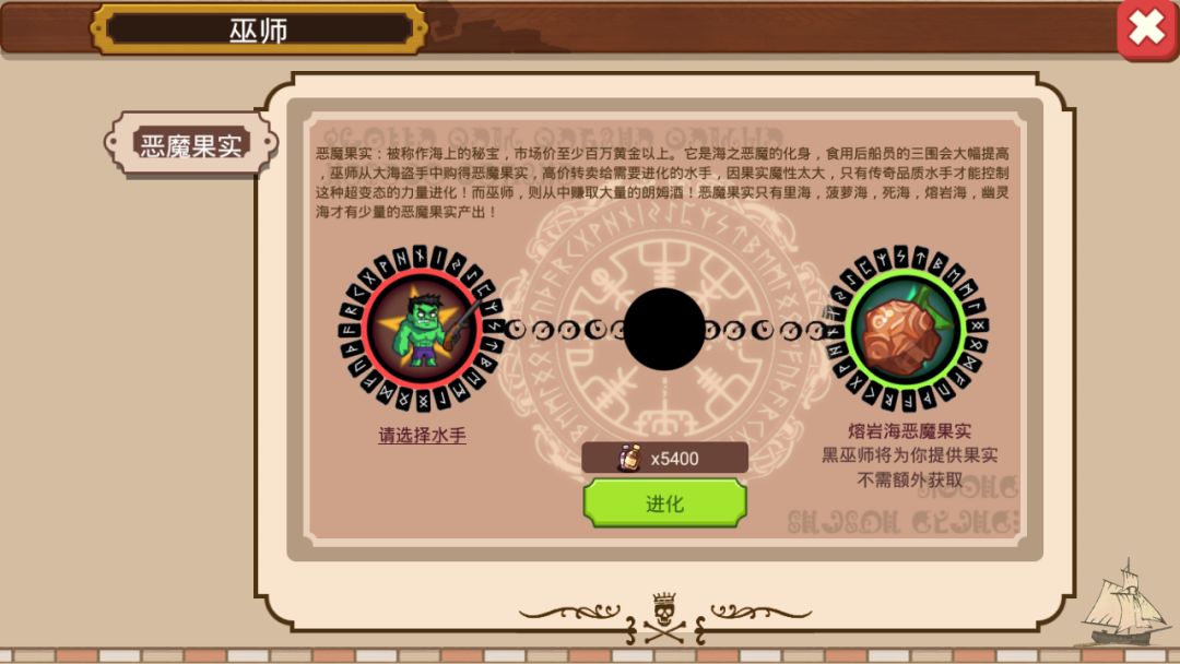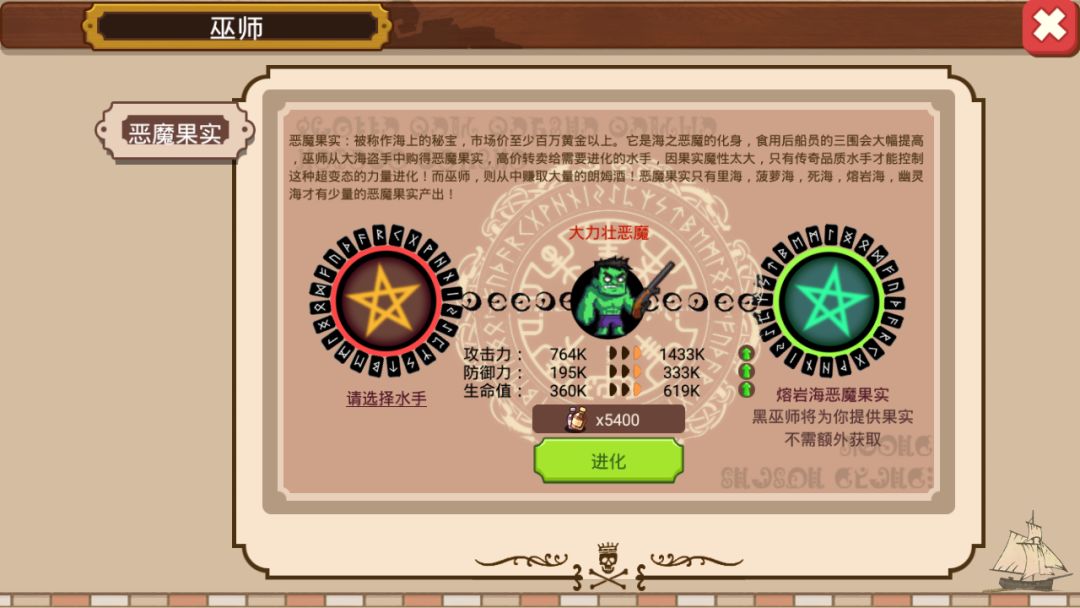 1.我集齐了菠萝海的阿壮海盗团,在进入下一个死海时,第一件事就是去黑巫师那吃恶魔果实。