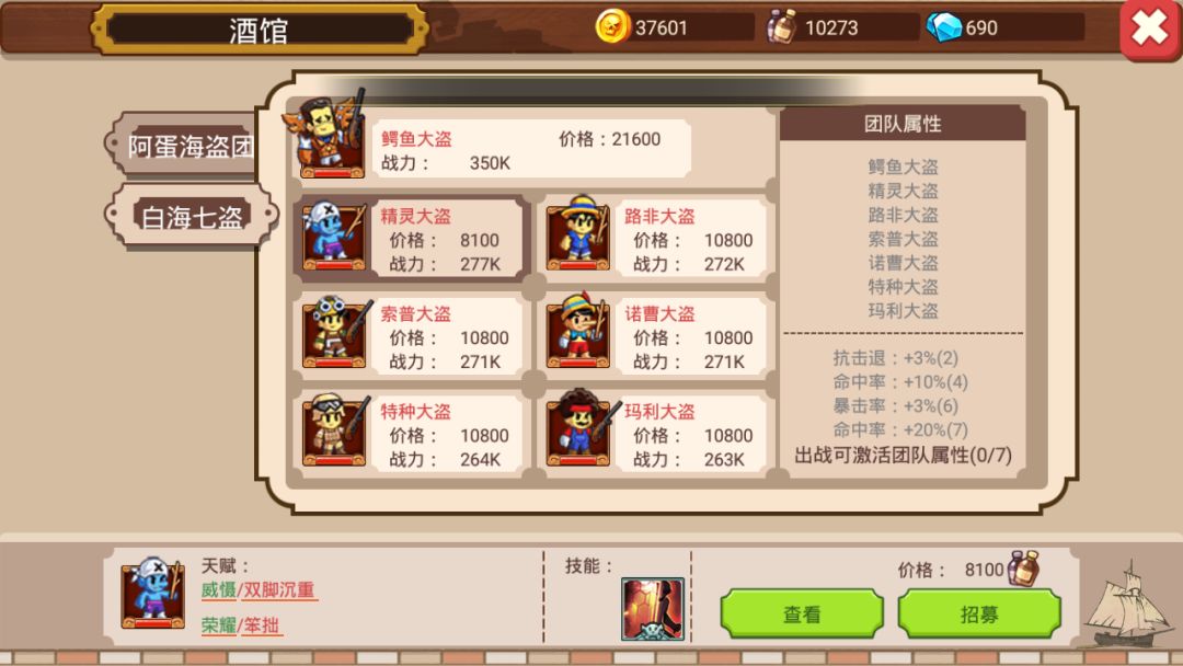 当前海域招募价格:8100/10800/21600(朗姆酒)