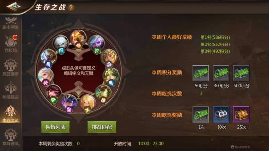 二. 本周奖励次数5次,也就是说你打的前5场会消耗奖励次数,会根据结束是你所在队伍的积分排名来发放对应的吃鸡币。排名第一的队伍50个币,往下递减,注意一点,是积分排名第一,不是活到最后那一队。
