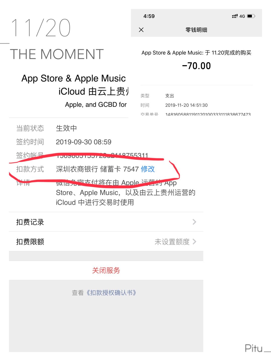 这里条款规定是扣银行卡,我这里扣的是零钱。