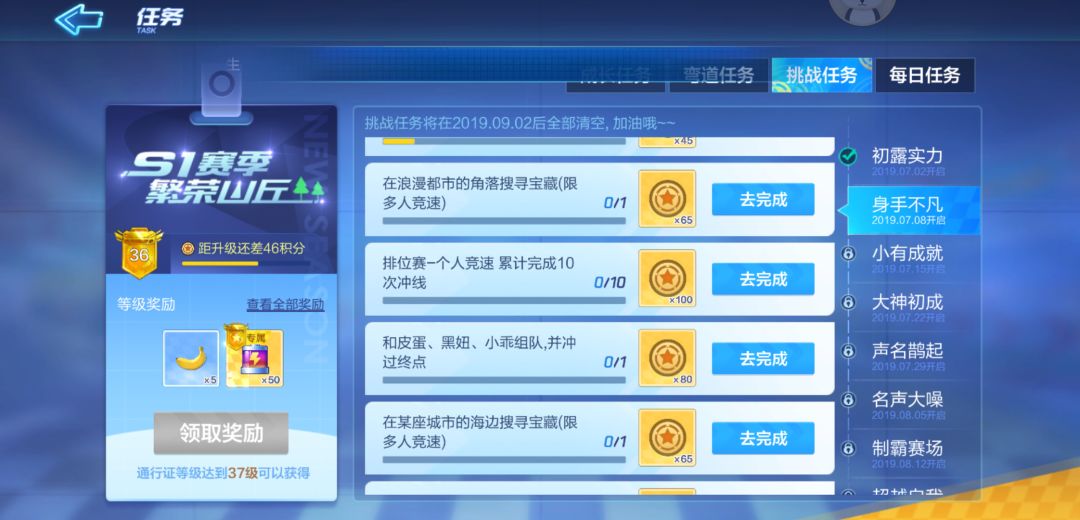 这周挑战任务怎么完成萌新真的不懂啊,第一次玩跑跑,以前只玩过飞车,感觉跑跑手感好点就玩跑跑了