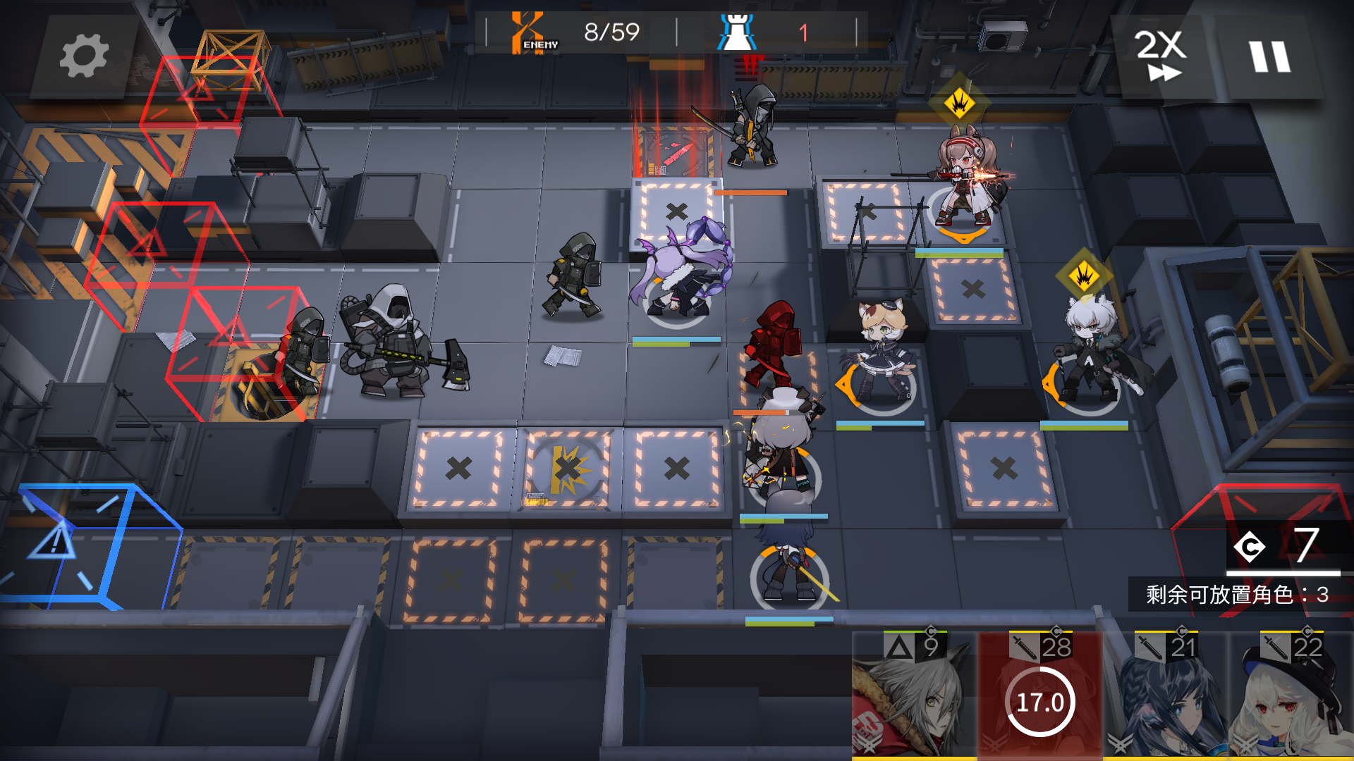 最后还有一个红刀和术师,空降红切死术师,安洁等人拖住红刀,等幽灵鲨和斯卡蒂银灰技能缓冲,重复上一次步骤就行。