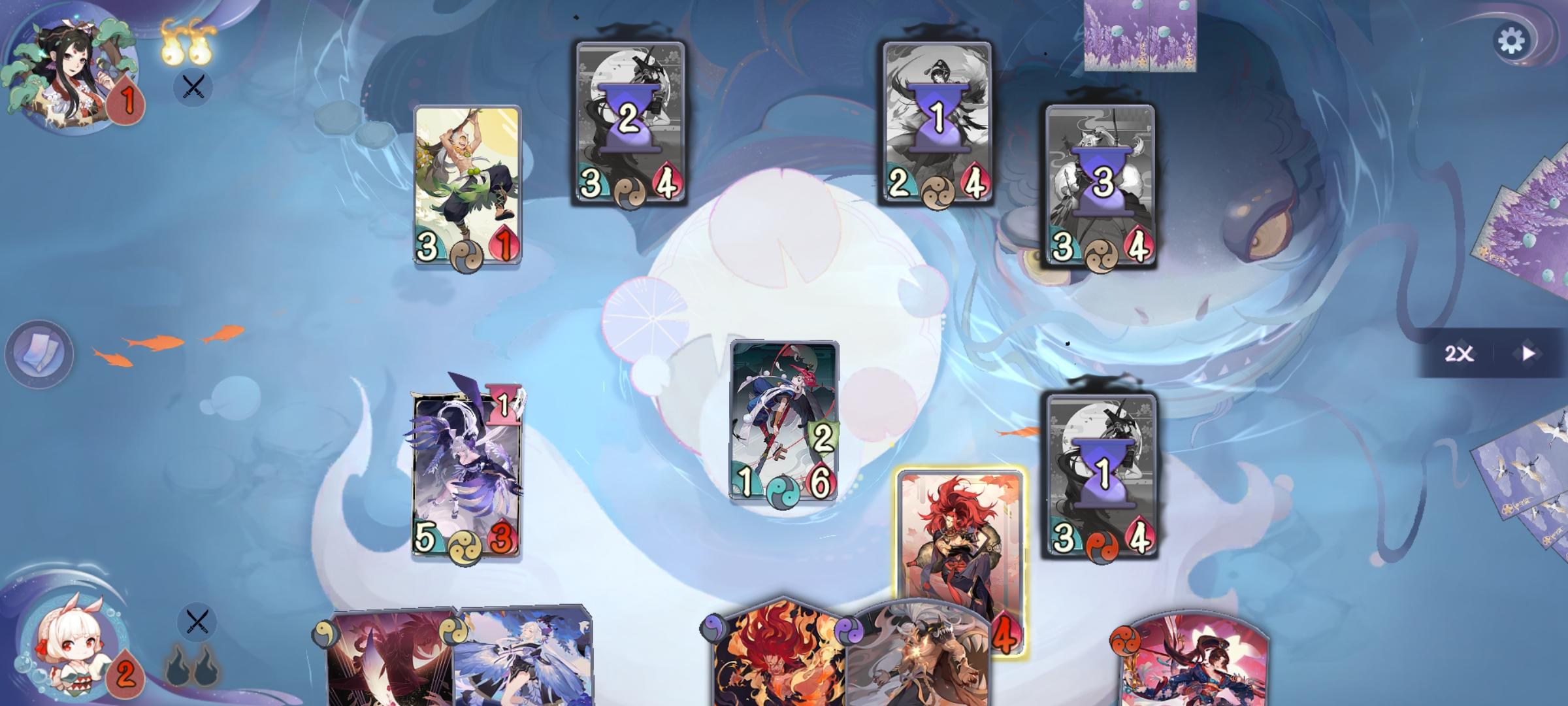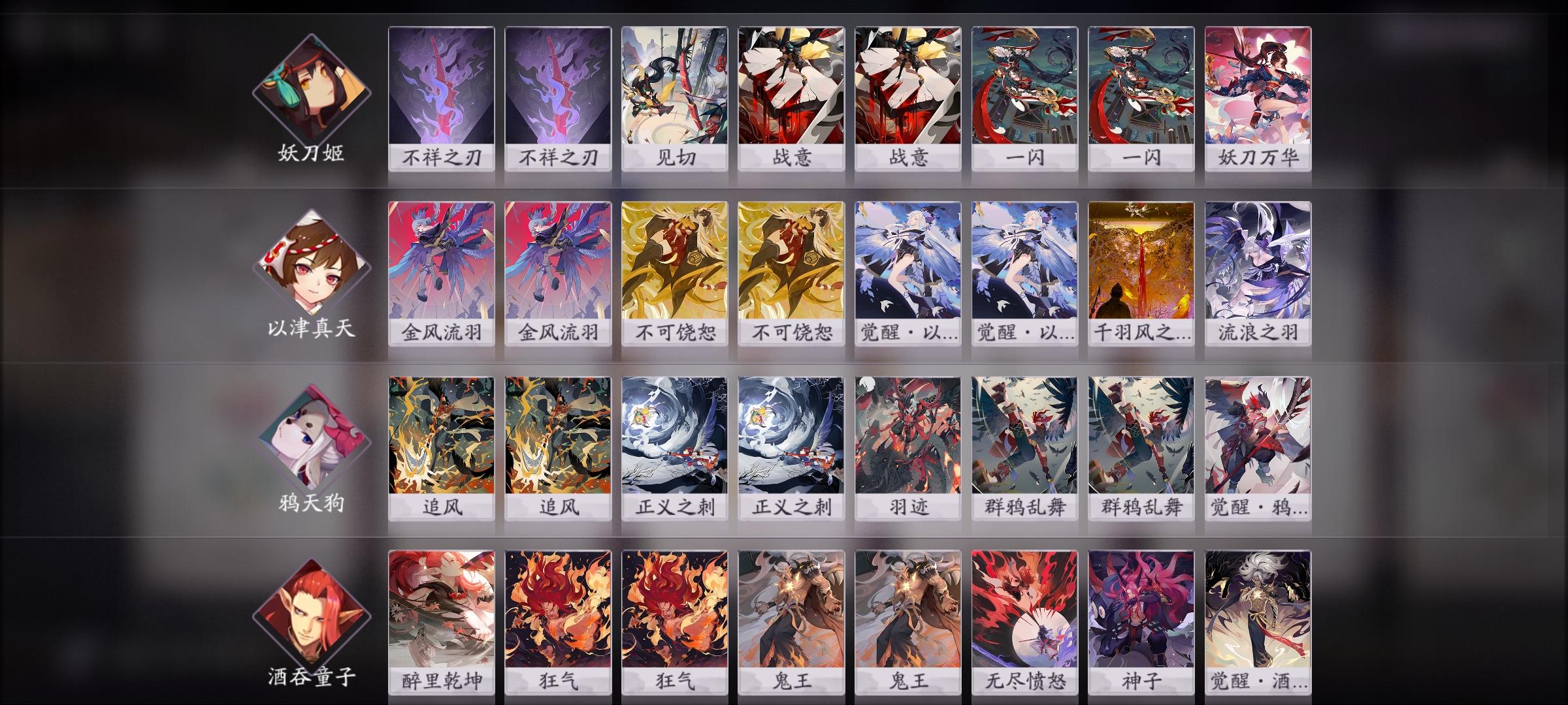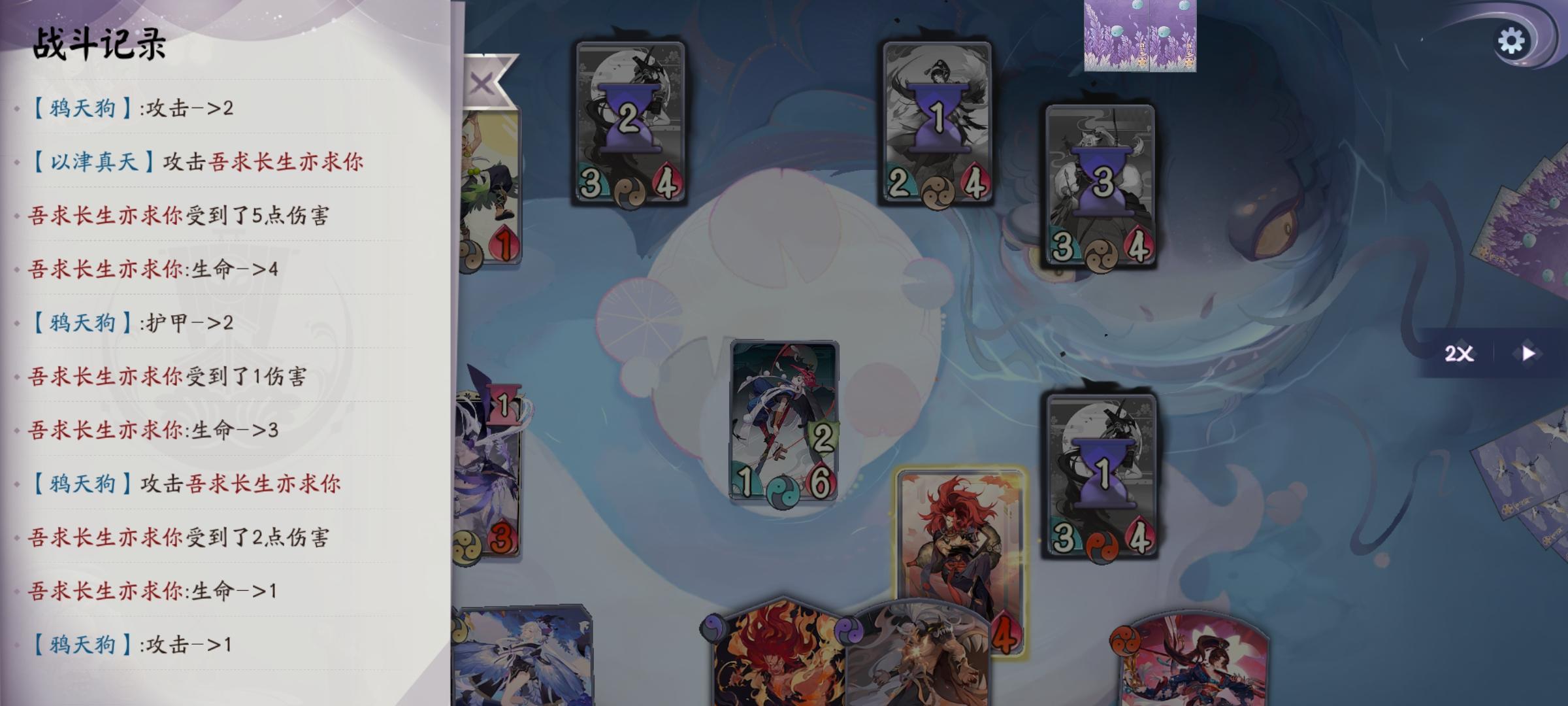 中速卡组 ,一共只有两张ssr可以说非常便宜。4核优点是快到3勾时对方不知道解你哪个式神,这4个式神谁3勾只要有牌都能独挡一面。对局主要思路是根据对手阵容拿牌 。因为几乎没有过牌为了保证入手率,比较重要的形态牌都带了两张。对抗快攻时,两张不可饶恕和两张群鸭乱舞能保证2勾站场上的争夺。对于自闭卡住则正义鬼王抢血。打鼓舞,烟觉带两张羽迹更容易解关键角色。 实战操作中发力点在2 3勾,这套阵容最大优势还是无法被针对。3勾能以各种方式发力。 神子正义,或觉醒神子站场。鸦天狗觉醒追风一闪普攻一闪。能抢21点血(不算形态)。真天形态清场或千风尝试斩杀。 对局时根据对手的阵容,和自己的手牌计算3勾的最佳发力方式。灵活多变,游戏体验也非常不错。 卡组为本人自创,如果感觉有帮助留言支持一下吧。