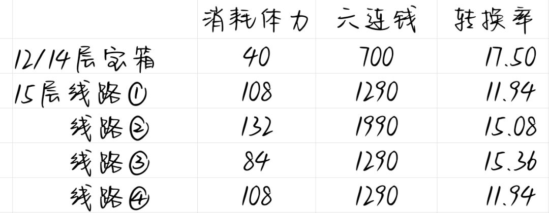 ④不带鬼不带光国线同样108体,收益应该和①差不多,暂时没体力所以不刷了