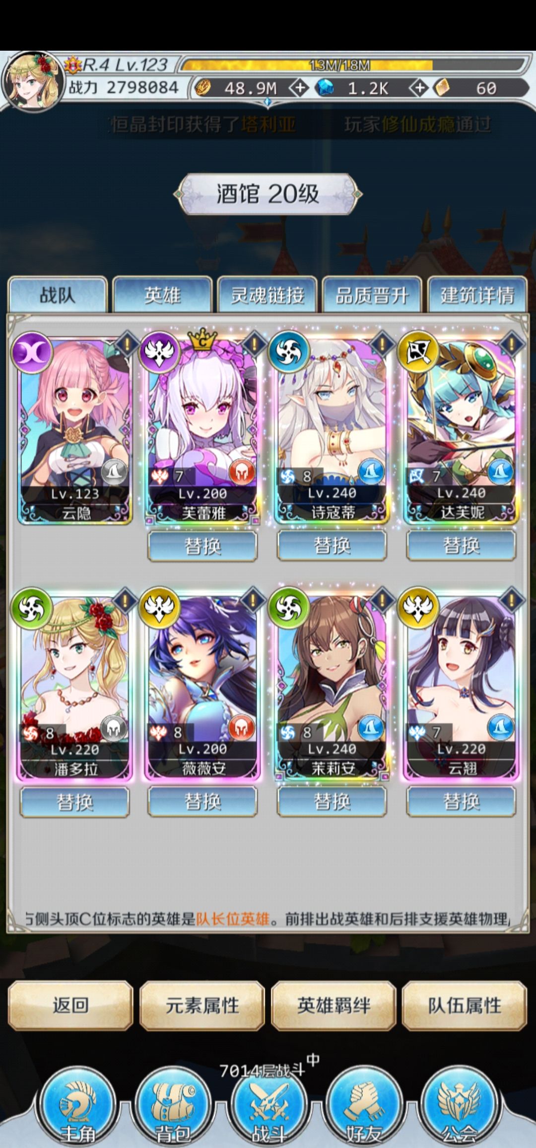 其实阵容搭配没那么复杂 我列出的也不一定是最好的关键在于你需要了解你英雄特性 什么适合出战(输出or辅助)输出先养 辅助后养 有芙蕾雅主角先养 属性搭配得当阵容之间差距没那么大 而乱换阵容损失的资源可能废了你的号![[嗒啦啦2_优秀]](https://img-tc.tapimg.com/market/images/bbb6da13ee1c31ee1405e261f12f366e.gif)