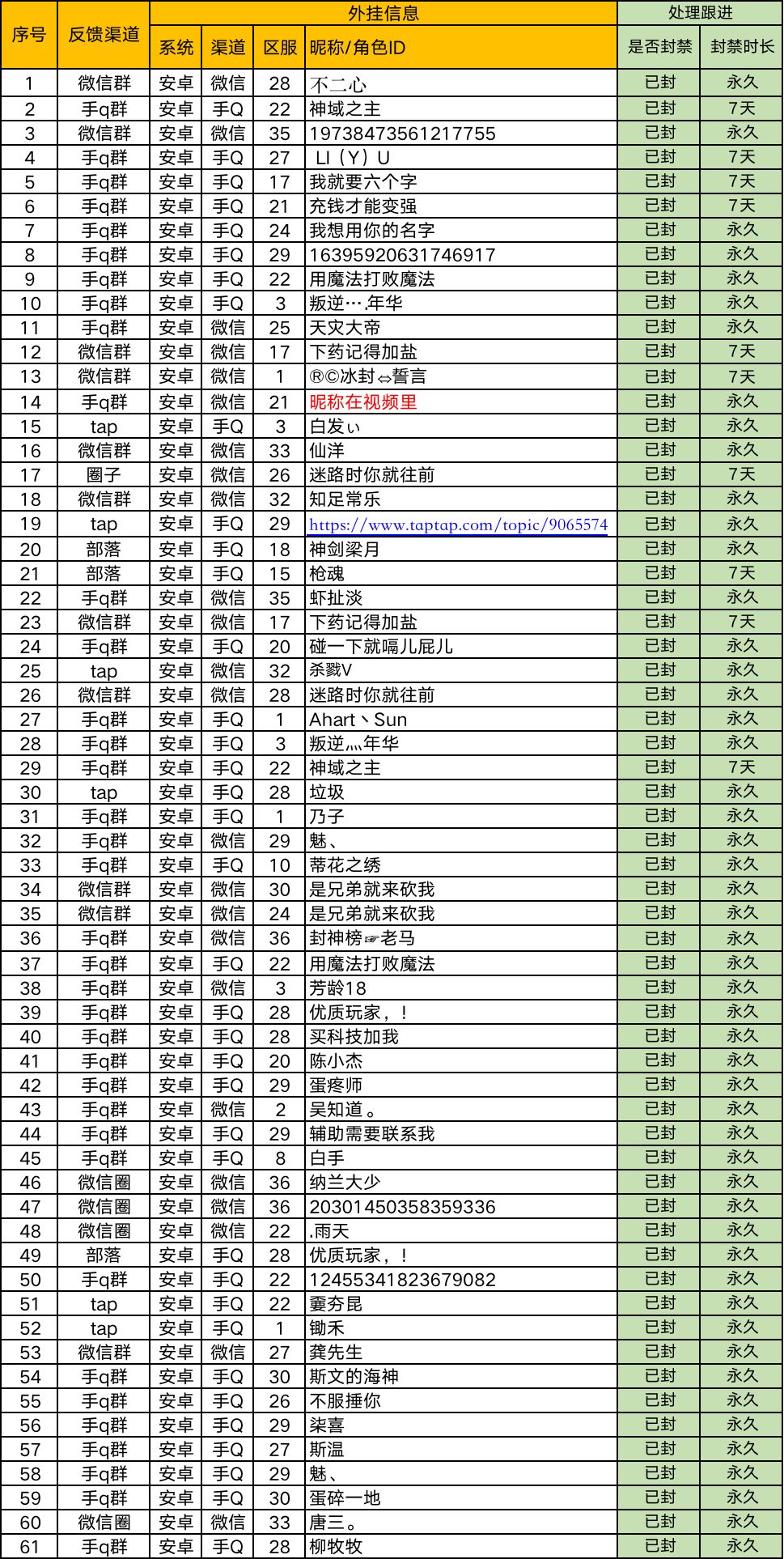 附:《猎人》手游第二批处罚名单公示