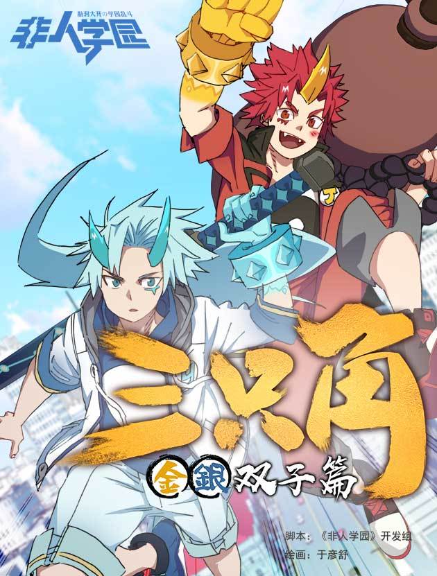 热血没头脑,高冷不高兴!《非人学园》漫画开启崭新篇章,正式推出SP《三只角》,为你讲述金角银角兄弟俩的故事。学园漫画SP《三只角》金银双子篇,由知名漫画家于彦舒主笔,现已在网易漫画和bilibili漫画上开始更新,想知道两兄弟有什么奇遇,就赶紧搜“三只角”追番吧!