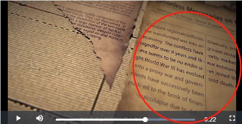 来到一张地图墙的面前,有一张题目是《冷战升级成为核战争,第三次世界大战已经开始》的文章,然后还有正文,大概意思就是昨天晚上10点,总统或是最高领导人命令他的maximum随时准备好开战,(这里的xxximum前半部分被挡住了,应该是军事部门或者军官之类的。)全部的平民都需要按照政府的一个疏散计划,重新安置到地堡(或者是防空洞)中。预测在第三次世界大战的十分钟后就会有核爆。(这个动作有点快有点吓人。)