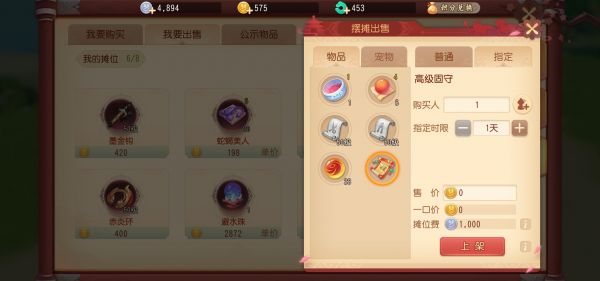 玩家间直接交易是没有的,3D的交易行系统称为摆摊;但是在摆摊中上架珍品道具、高级兽决等时可以设置指定价和一口价,指定价格用来给指定购买人在指定交易时间(1-7天)购买,商品最长上架时间是7天。指定交易期间其他人只能一口价购买该物品,指定期间售出则手续费从9%提高到15%,并且最低指定价是5万金币;若指定期间物品未售出,则剩余上架时间内其他人都可以按指定价购买。在大侠看来指定交易相较于网易之前手游的交易系统来说也是一大进步了;