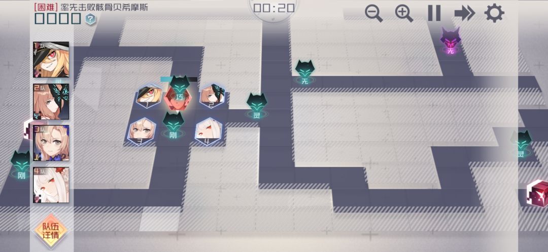 灵队一路灭两队后拿取宝箱,随后直奔右上宝箱,中途解决守护宝箱的两个刚队,前面一个无属性的队伍交给主力队伍解决就行了(前面都可以不切换,不是很伤,队伍不能团灭不然队伍就会消失,最后一波可以切换节省时间)