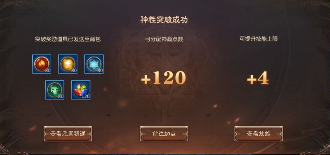 英雄们在完成神性突破后即可开启元素精通系统,可以提升元素伤害效果,并且获得额外元素技能;