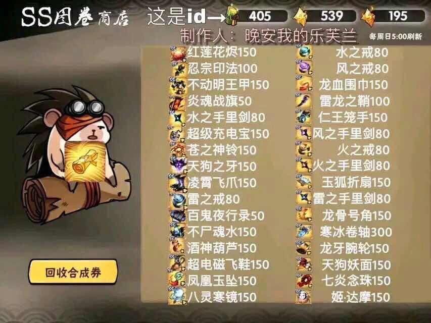 求商店s宝物刷新顺序表