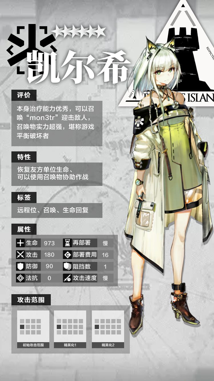 Mon3tr可以攻击附近所有敌人,且再部署时间减少5s,凯尔希治疗量的70%会治疗Mon3tr(3级)