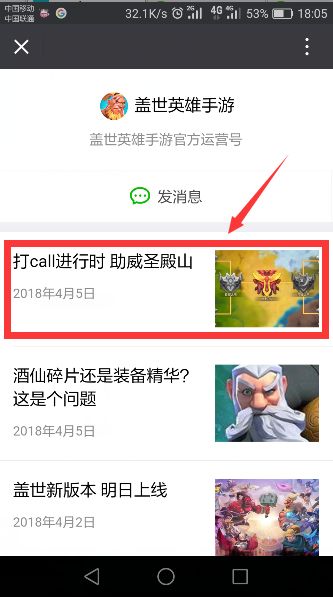 2.点开首篇文章《助威圣殿山 打call进行时》,按照要求留言回复即可。