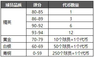 *“赛季大师代币”会根据球员评分、品质等分2种评定标准给予不同数量。