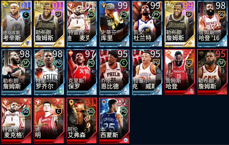 * 所有球员都包含美职篮阵容和经典阵容,可交易和不可交易版本。