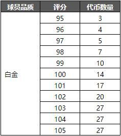 * 新赛季前夕推出的部分新球员,官方会在后续更新公告中特别标注可合成的“赛季大师代币”数量,未说明的新球员依然参考以下公式。