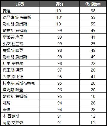 * 所有代币都将根据所拥有的球员数量一一对应,比如拥有2张美职篮的101勒布朗·詹姆斯,即可获得2份代币。