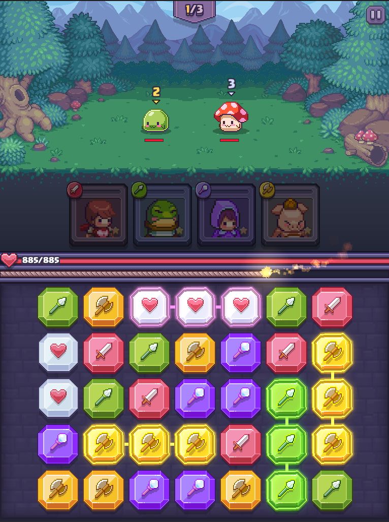 尽管游戏即将上线了,但也只曝光了部分截图。据悉,本作的玩法是结合了《逃婚》与《Swap Heroes》的特色玩法,就是三消+回合制战斗。