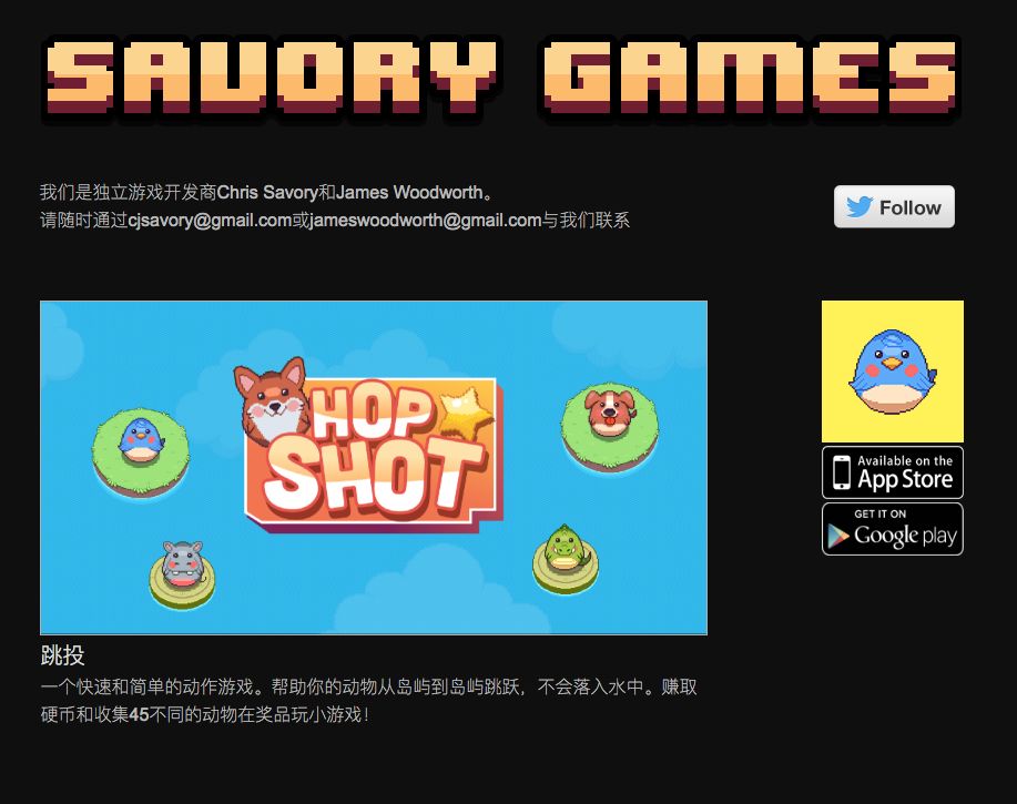 特别要介绍一下是 Chris Savory 独立游戏工作室,热衷于像素风格的手游开发,从他们的主页上,也能看到同风格可爱的小游戏。