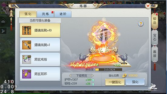 《梦回仙灵》中强化装备的方法大致分为三种。