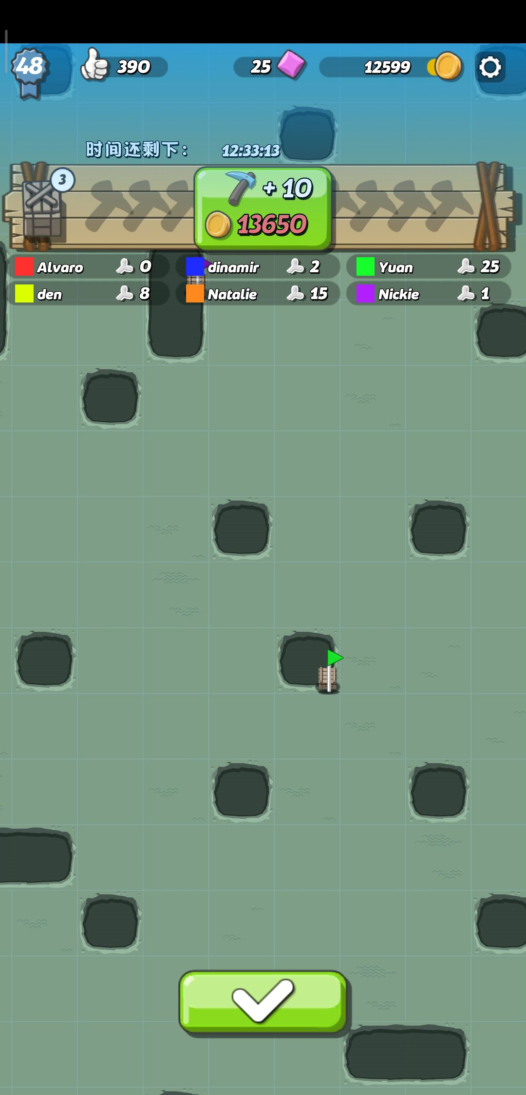 说下方法,简单来说这个就跟扫雷一样,挖了之后出现绿圈就说明周围有骨头,出现小的绿圈说明以挖的点为中心3*3的范围内有骨头,出现大的绿圈说明在以挖的点为中心,5*5的区域内有骨头,并且不在3*3范围内。接着在周围稍微挖一挖,先几个圈的交集就好了。