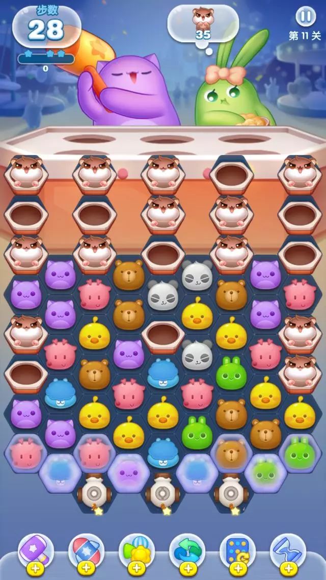 游戏时,地鼠会分布在地图任何位置。这个时候消除地鼠的绝招就是:合理的利用特效在地鼠出没的洞口旁边进行消除,地鼠就被抓光光啦!