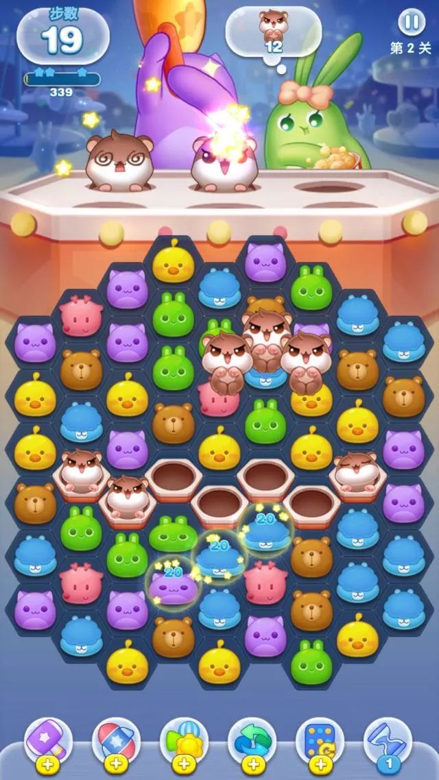 当地鼠出现在洞口时,瞄准它们所在洞穴,在洞穴旁边消除小动物即可!
