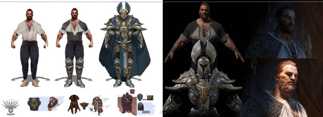 《拉结尔》的英雄模型都是用次世代流程制作,模型的开始阶段设计师拿到原画的时候,首先要分析原画,确定设计、造型、材质之后再去制作。