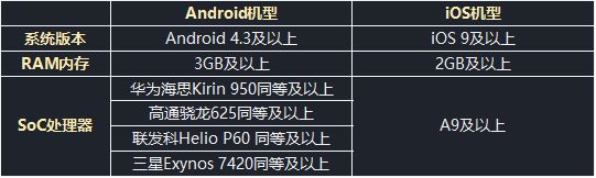A:下表是推荐配置哦~使用推荐配置可以体验游戏内里中、高配画质哟。