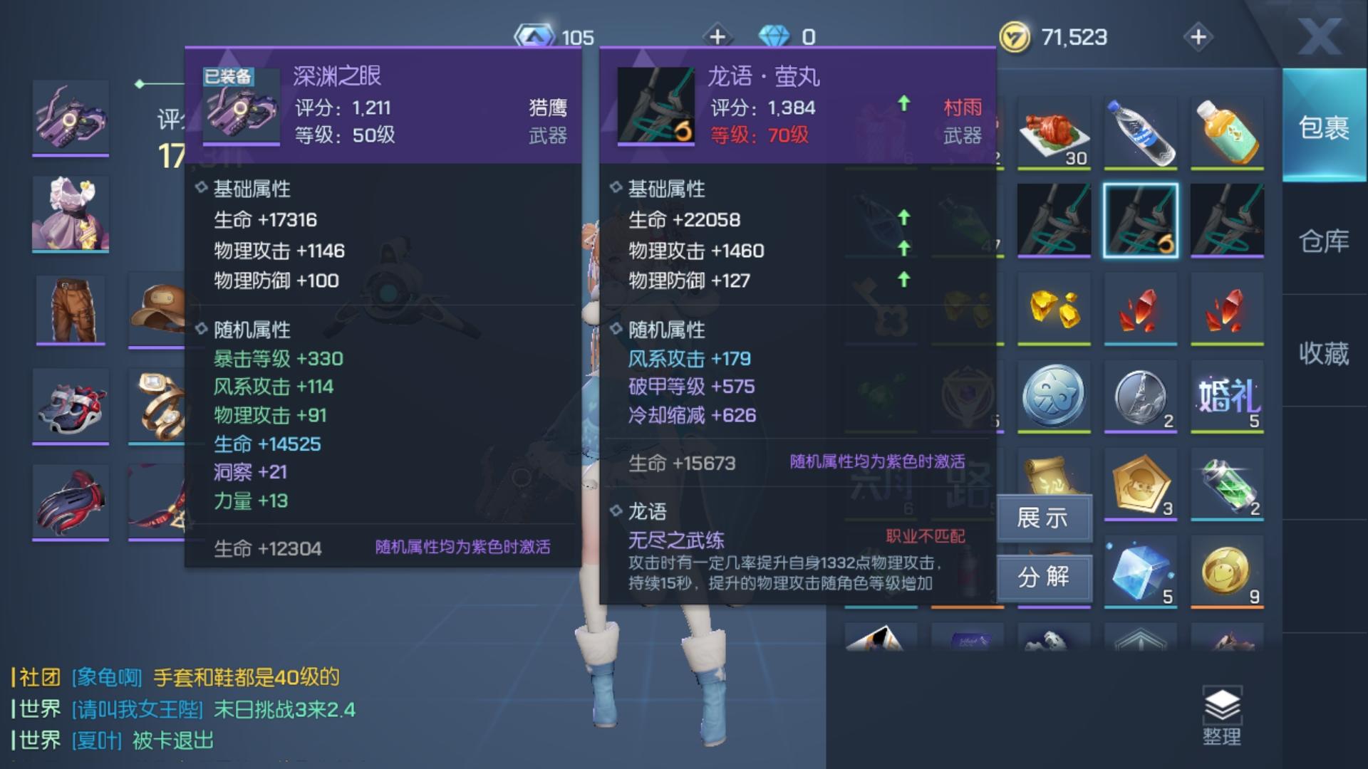 刚刚得到了人生第一把龙语,兴致勃勃的转职回村雨,68级想想买把70的以后用,结果一个手欠点了分解。。。。