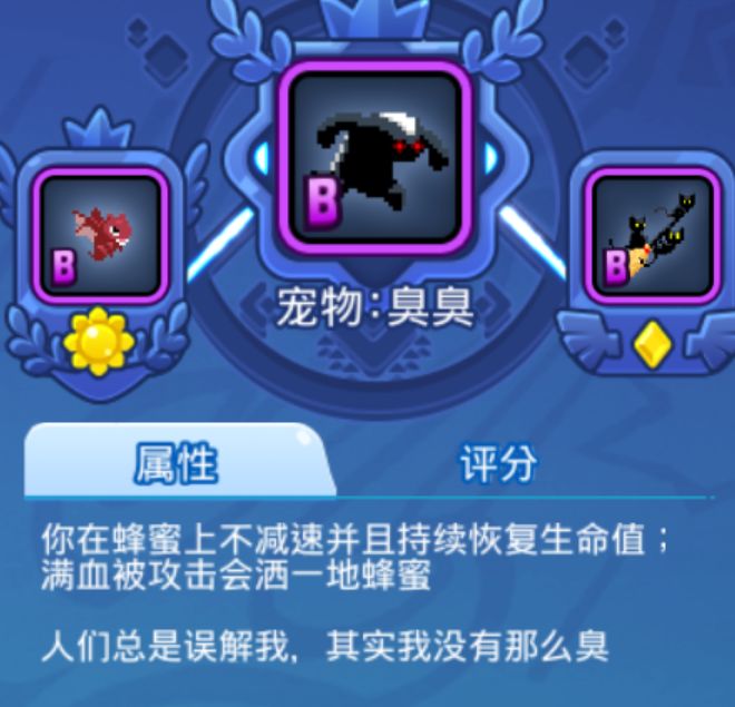 目前非常强势的单挑宠物,被攻击后洒出对地方减速的蜂蜜且持续回血,续航和控制能力极强,碎片可在烤鸡店获得。