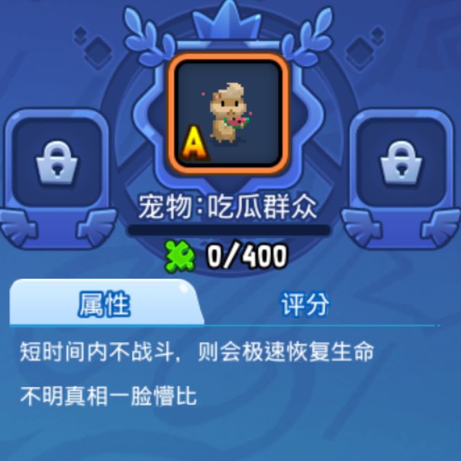 血量始终快速回到半血状态,相对吃瓜和臭臭表现一般,任务、商店、夺宝均可获得碎片。