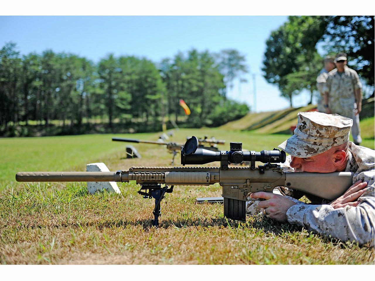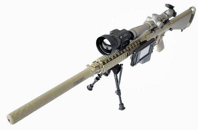 ■ M-110狙'击步枪,英文:M110 Semi-Automatic Sniper System,全称:M110半自动狙击手系统。该枪采用气吹式半自动发射,与使用手动枪机系统的M24相比射速更高,可确保狙击手即使在居民密集地区也能精确快速地锁定目标。该枪配装长508毫米重型浮动式枪管,全枪长1030毫米,枪口可安装长150毫米的枪管附件以减少噪声和枪口焰,全枪质量7.9千克,采用10发/20发弹匣。