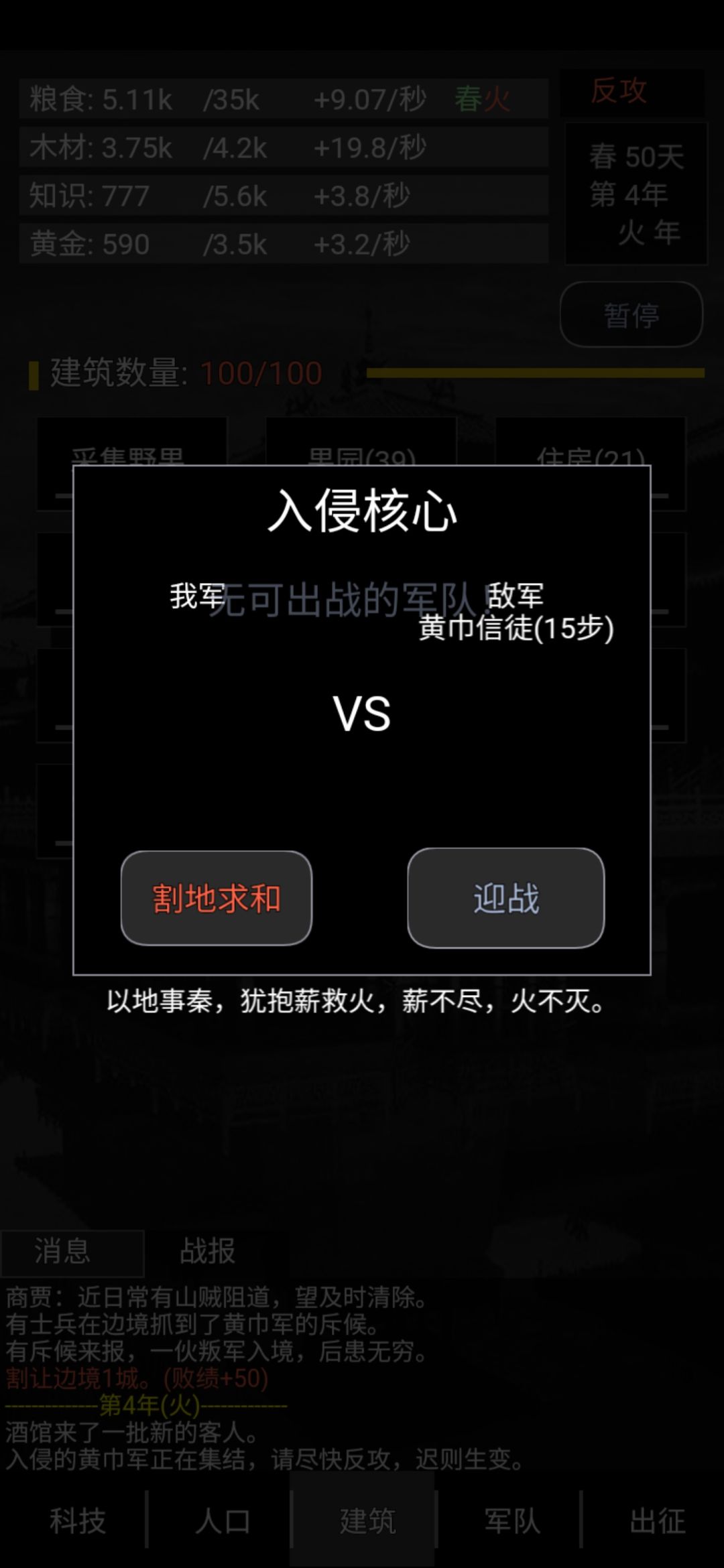 没将领有兵,不能迎战,输了割地,完蛋