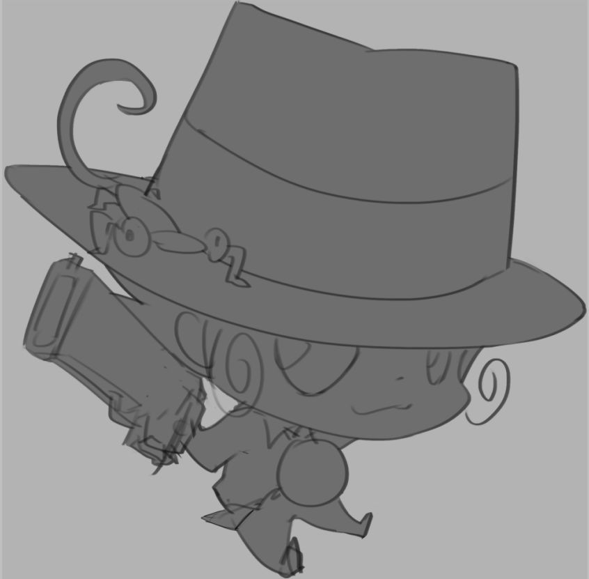 绘制过程想必不用赘述,最终给版权方交上了手持霰弹枪的Reborn、日常邻家微笑友好型纲吉、超死气模式酷帅纲吉以及正常黑西装boss款纲吉等系列ICON后,没过多久,版权方就耐心给出了不少反馈,基本都是平时没注意到的:比如Reborn和纲吉画风不够原版,和动画画风有些差距;再有就是下面这张图中,Reborn的持枪姿势不正确,在没有准备开枪的时候食指是不会放在扳机上的,这让Type001认识到自身对《家庭教师》的了解还不够深,真是有愧粉丝之名。