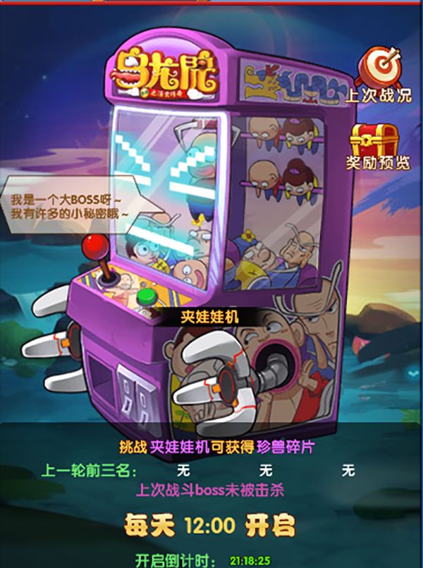 《乌龙院之活宝传奇》中有一个人机大战玩法,里面有着夹娃娃机和被夹娃娃机,夹娃娃机在每天的12点就会开放,而被夹娃娃机就会在每天的开放。在这里你需要的是挑战这2个BOSS,在这里你将与全服玩家共同击败这2个BOSS,在活动结束之后如果击败BOSS那就可以获得奖励,在结算的时候会结算全服伤害前十的玩家,在伤害前十的玩家就可以获得额外的奖励,而前三名的玩家则会获得最丰厚的奖励,如元宝、宠物碎片等,先要获得更多的奖励那就一定要努力去打伤害啦!